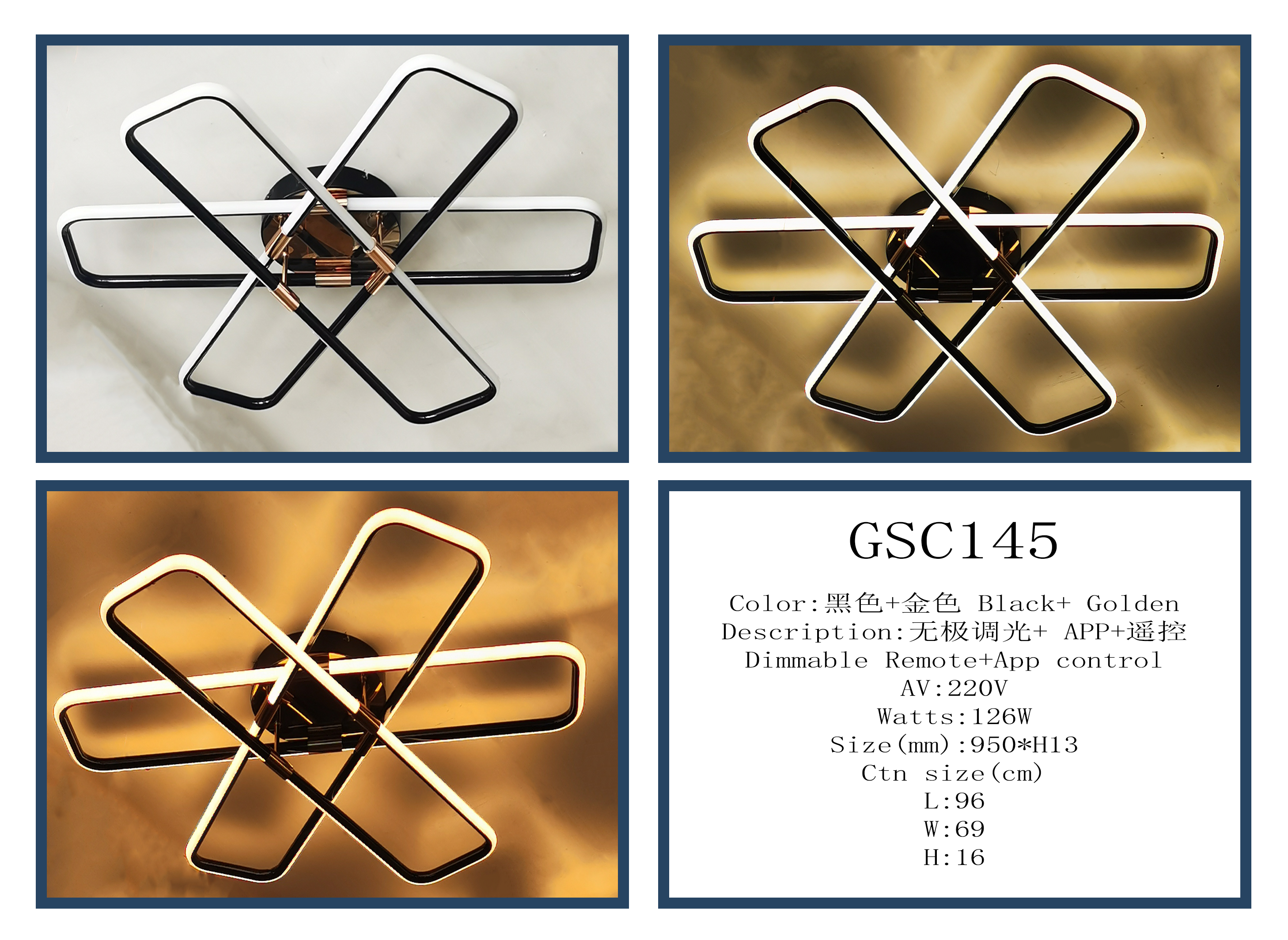 Modern Ceiling Light with Long Black & Golden Rounded Rectangles in Flower Pattern